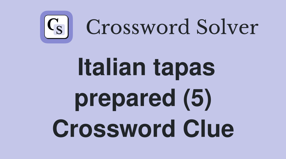 Italian tapas prepared (5) Crossword Clue Answers Crossword Solver