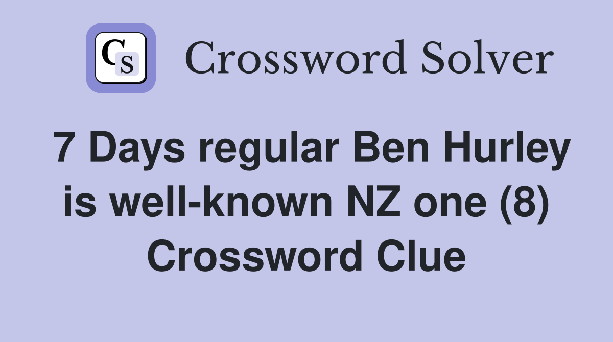 7 Days regular Ben Hurley is well known NZ one (8) Crossword Clue