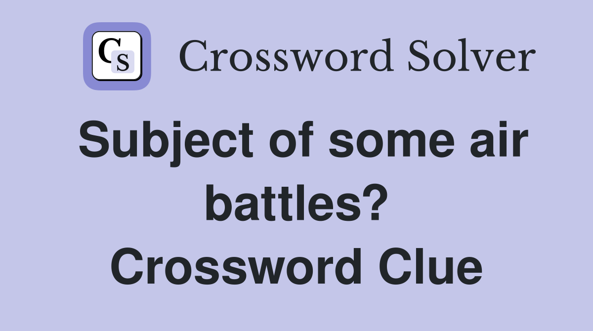 Subject of some air battles? Crossword Clue Answers Crossword Solver