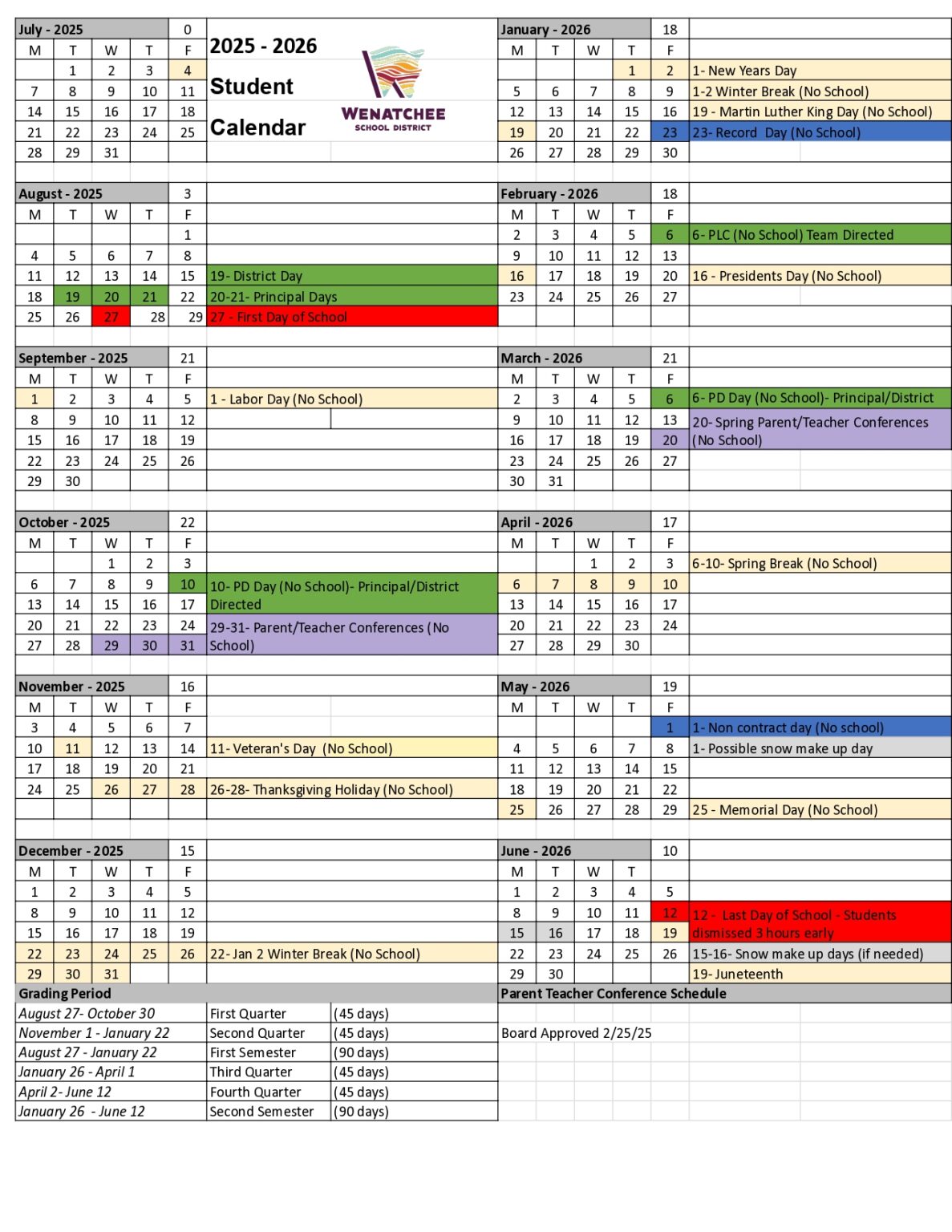 Wenatchee School District Calendar 25 26 Revised PDF EduCounty