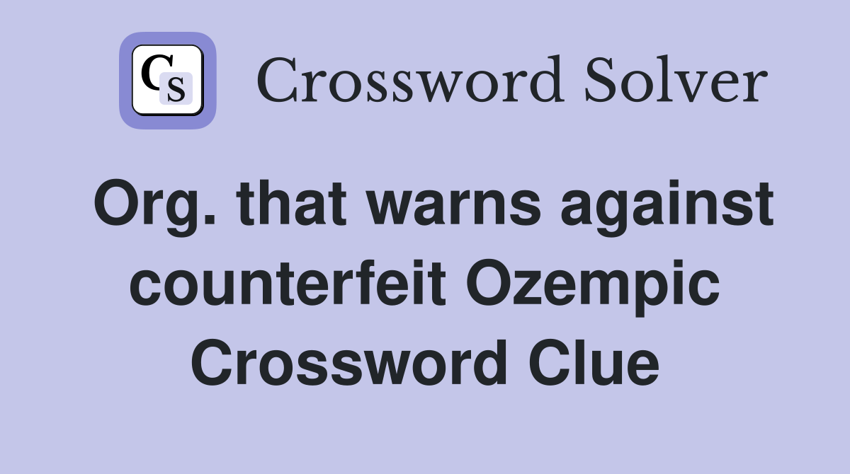 Org that warns against counterfeit Ozempic Crossword Clue Answers