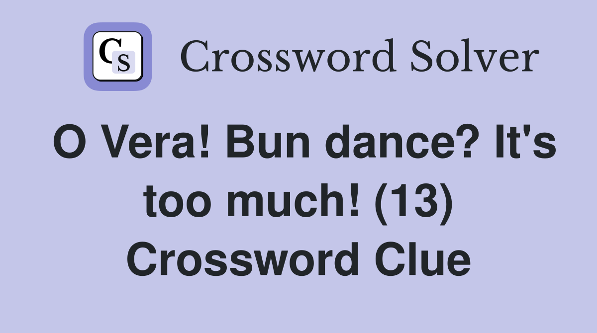O Vera Bun dance? It #39 s too much (13) Crossword Clue Answers