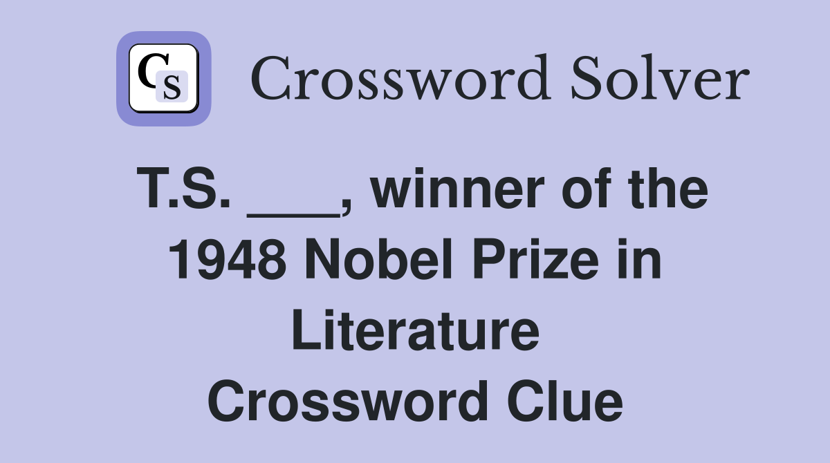 T S winner of the 1948 Nobel Prize in Literature Crossword Clue