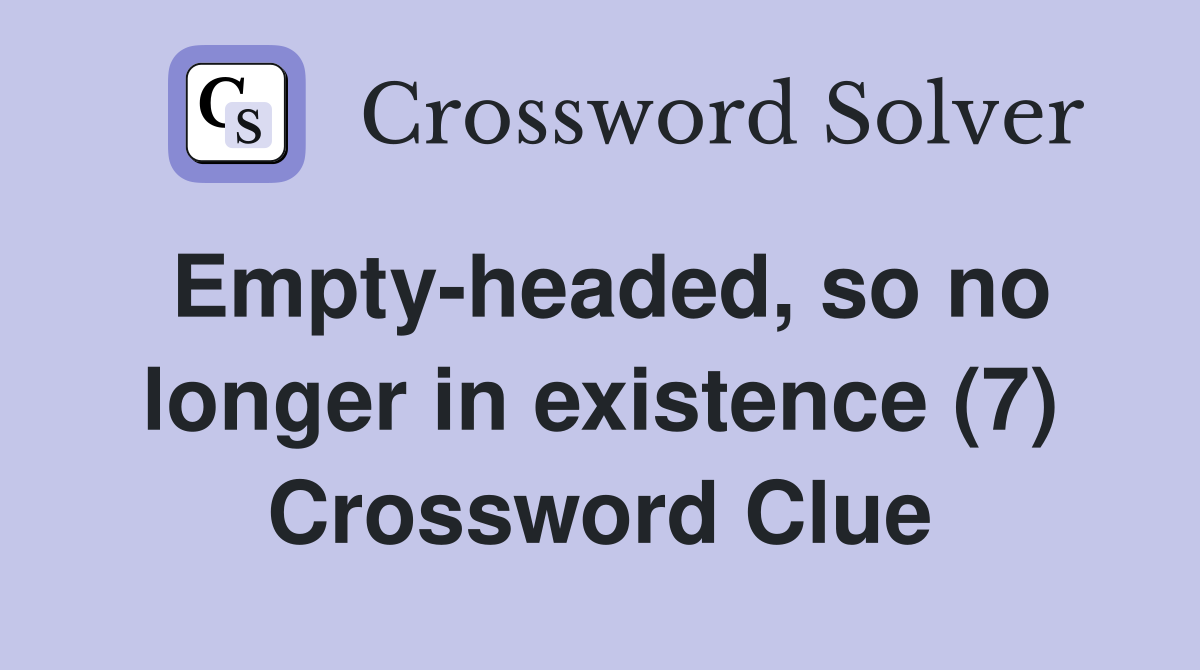Empty headed so no longer in existence (7) Crossword Clue Answers