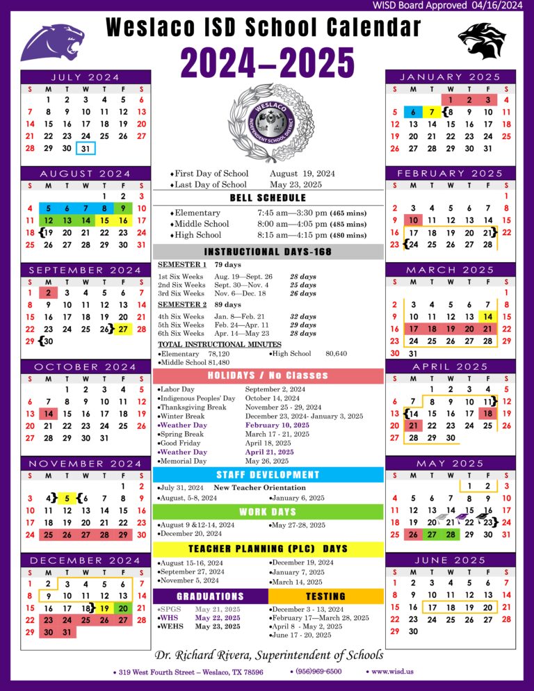Weslaco Isd Calendar 2024 2025 Heath Elizabeth