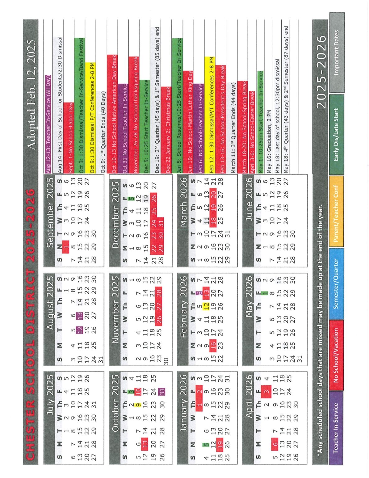Chester School District Calendar 25 26 Revised PDF EduCounty