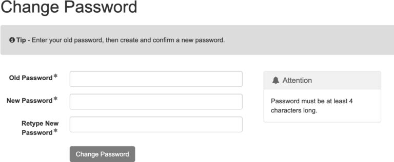 Settings: Change Password in the e filing application