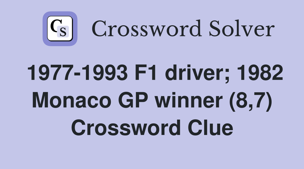 1977 1993 F1 driver 1982 Monaco GP winner (8 7) Crossword Clue