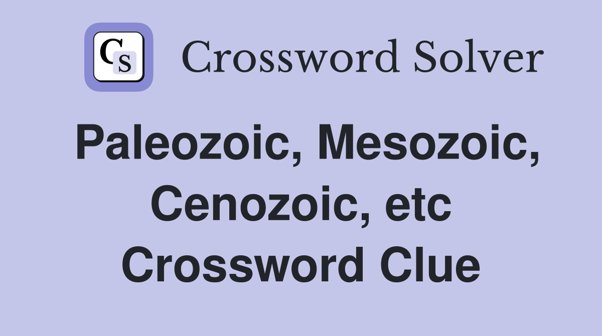 Paleozoic Mesozoic Cenozoic etc Crossword Clue Answers Crossword