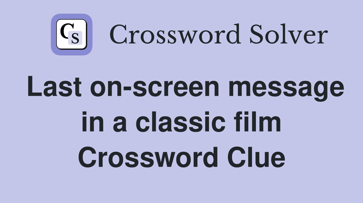 Last on screen message in a classic film Crossword Clue Answers