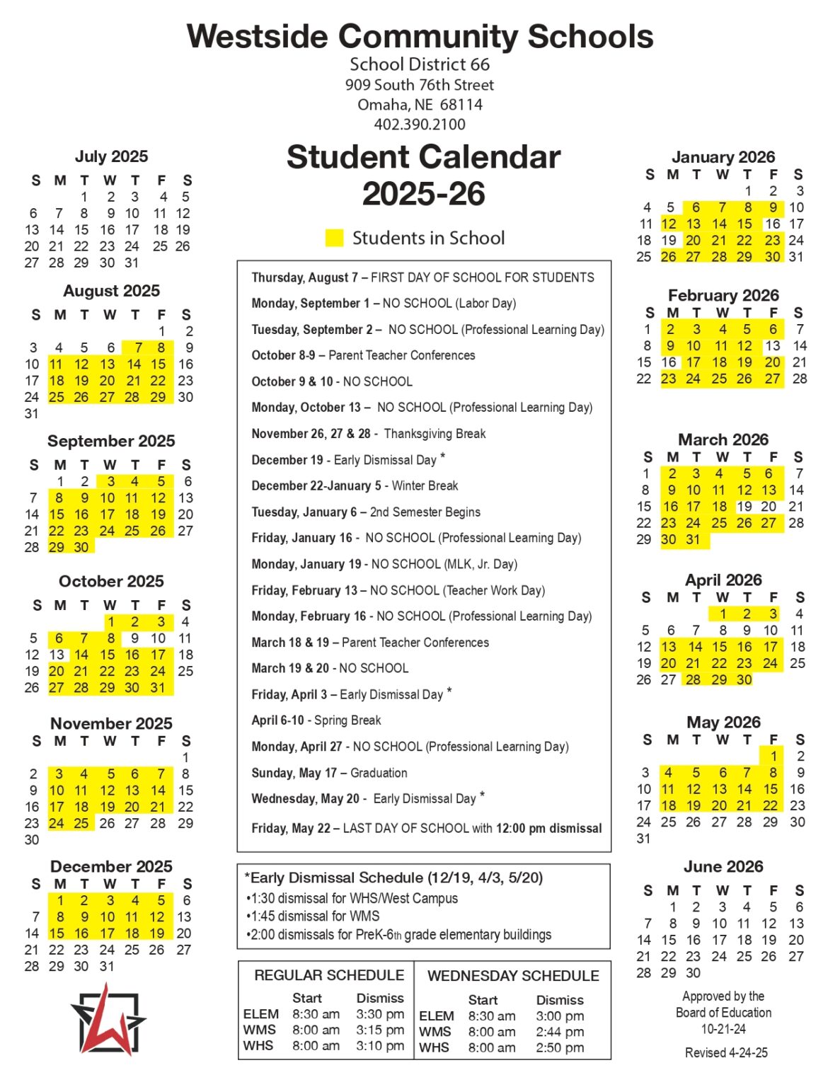 Westside Community Schools NE Calendar 25 26 Revised pdf EduCounty