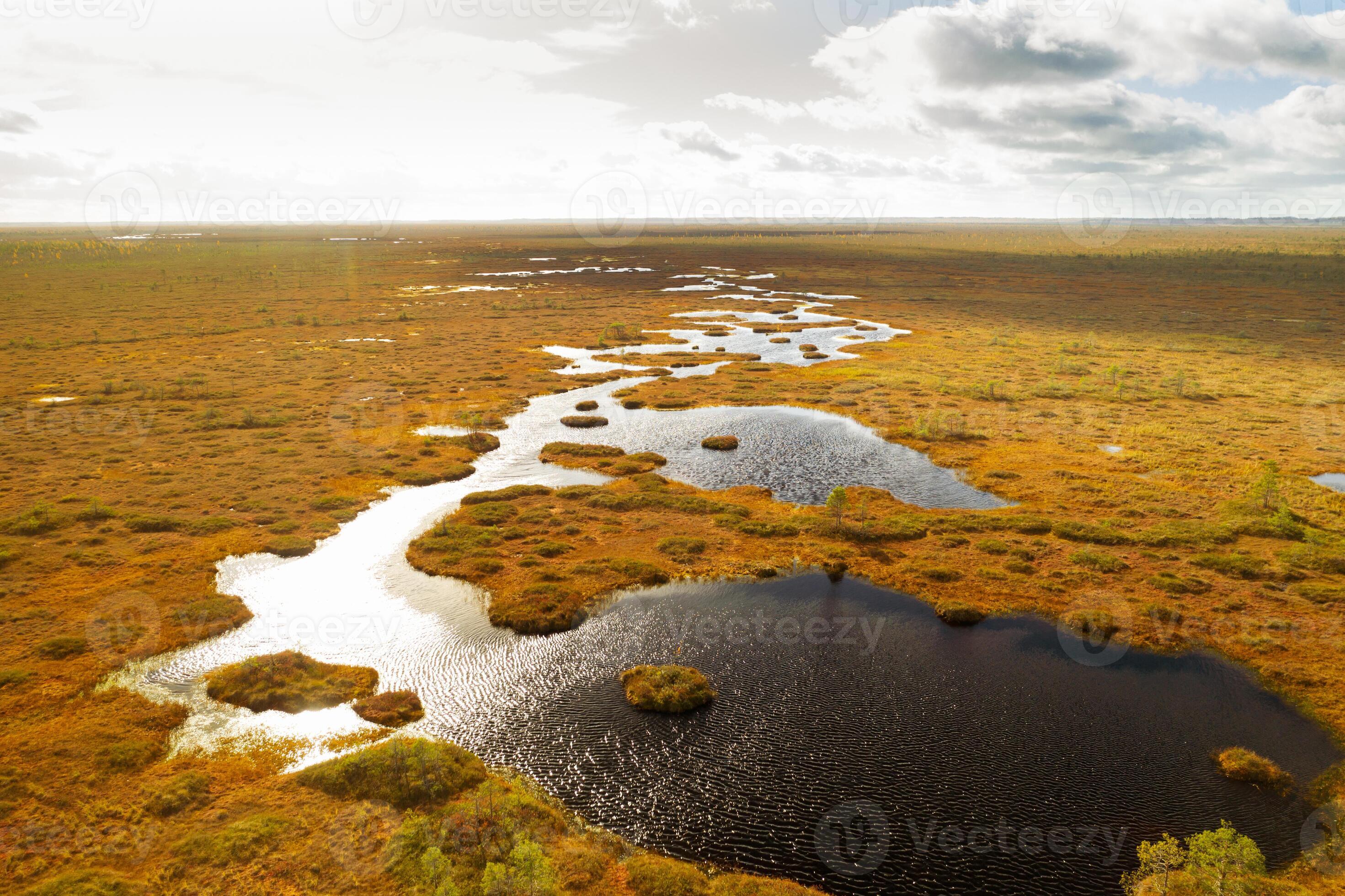 An aerial view of an autumn bog in Yelnya Belarus autumn Ecosystems