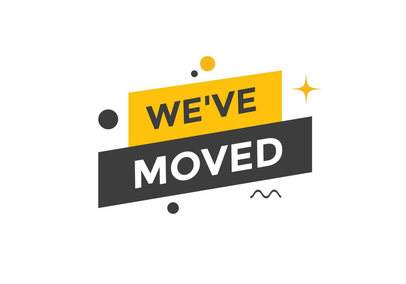 Weve moved concept Colorful label sign template We have moved symbol