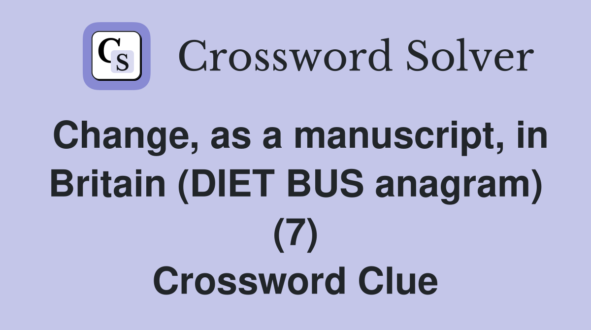 Change as a manuscript in Britain (DIET BUS anagram) (7) Crossword