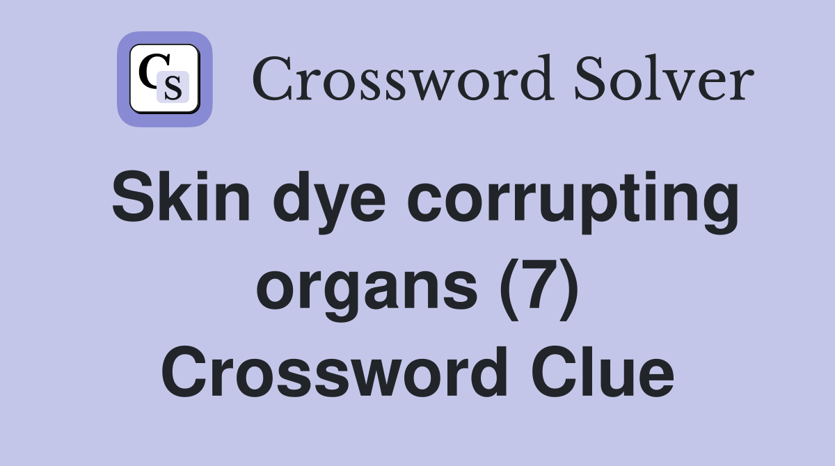 Skin dye corrupting organs (7) Crossword Clue Answers Crossword Solver