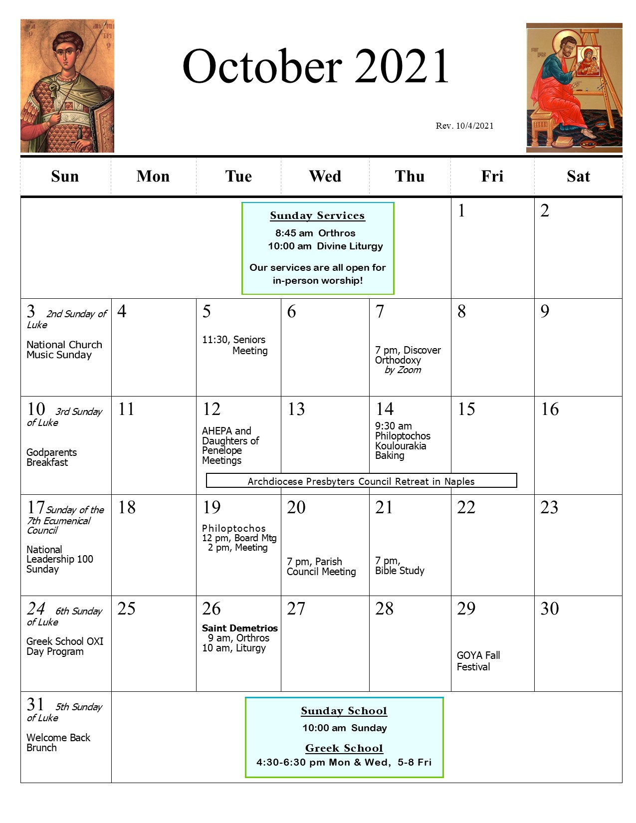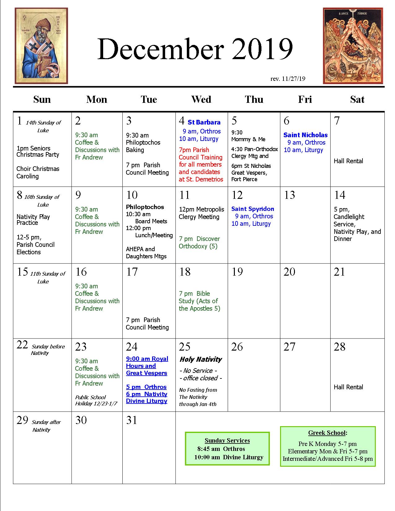 Parish Calendars Greek Orthodox Archdiocese of America Greek