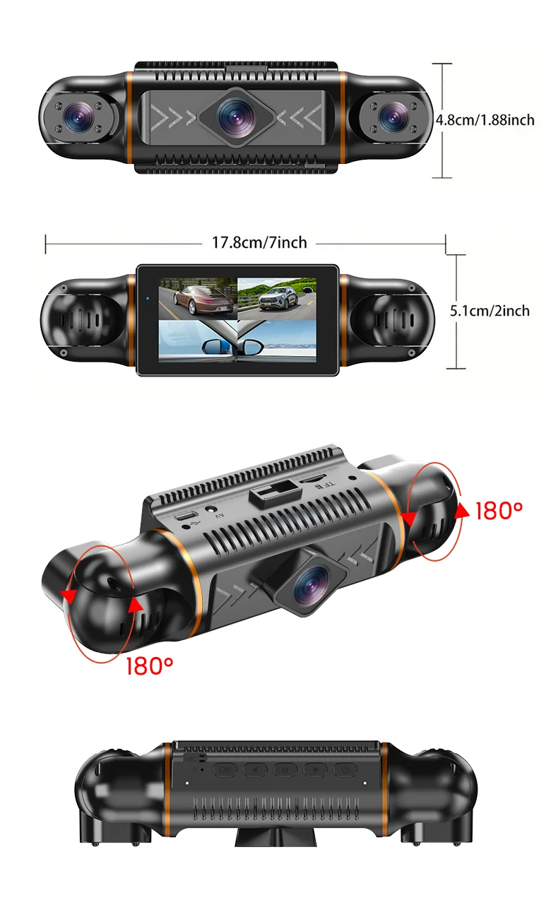 Amazon com: Dash Cam 360° Dash Camera for Cars Front and Rear Inside