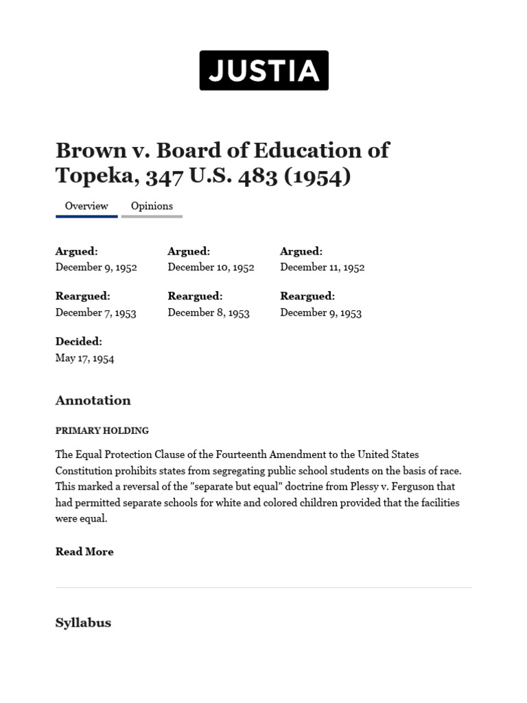 Brown v Board of Education of Topeka 347 U S 483 (1954) Justia U