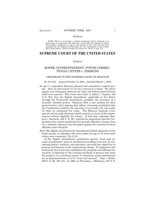 Roper v Simmons edited docx SUPREME COURT OF THE UNITED STATES DONALD