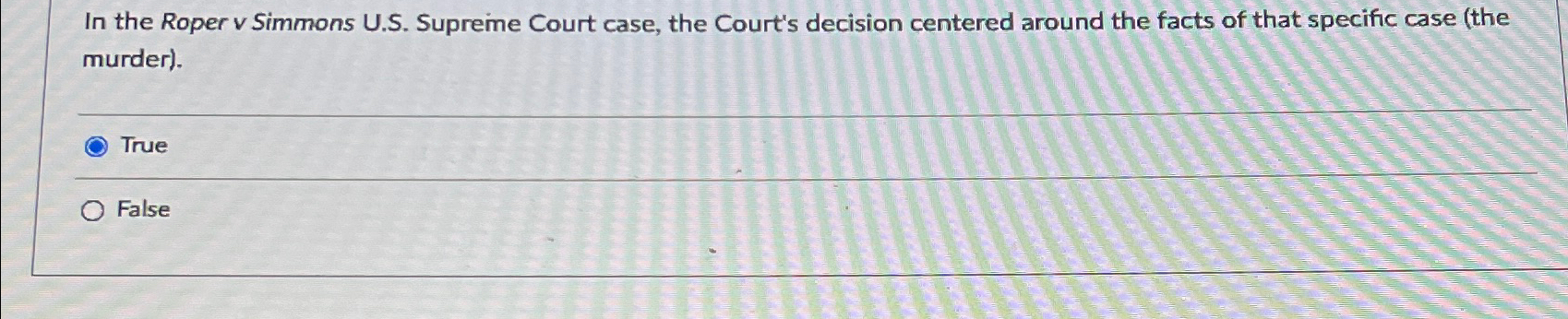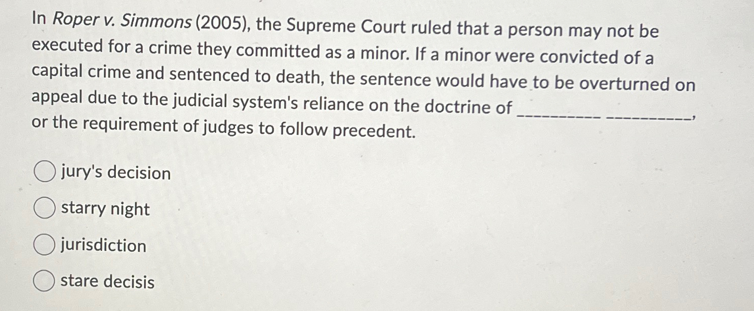 Solved In Roper v Simmons (2005) the Supreme Court ruled Chegg com
