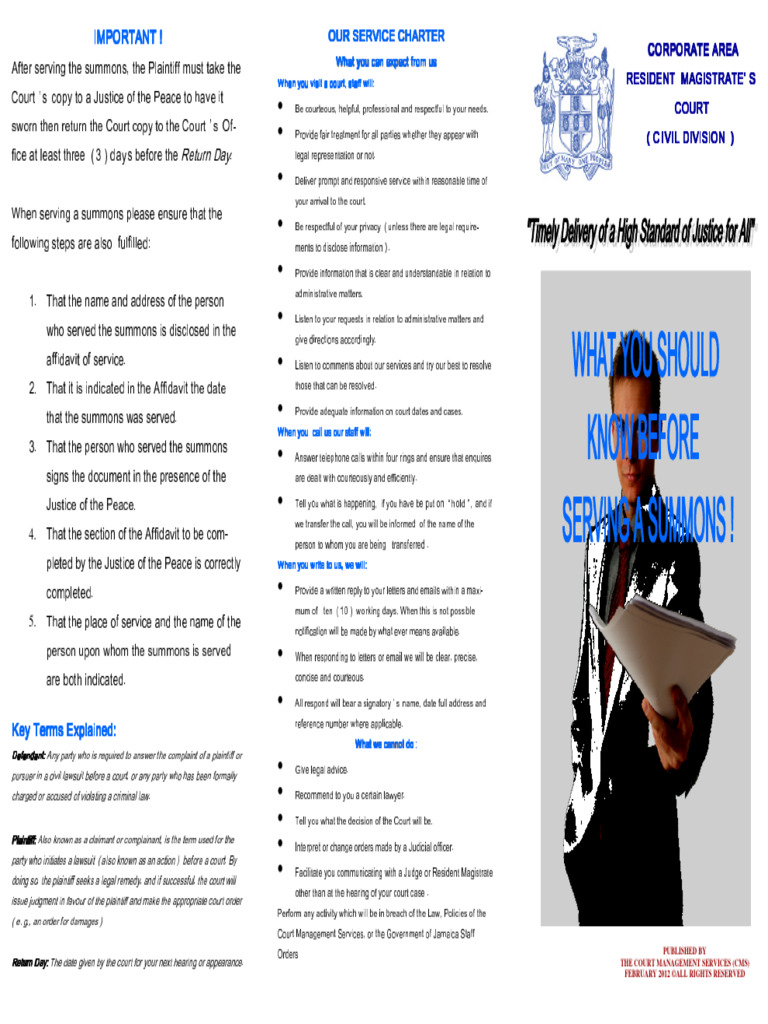 Summons Civil Court Brochure PDF Plaintiff Lawsuit