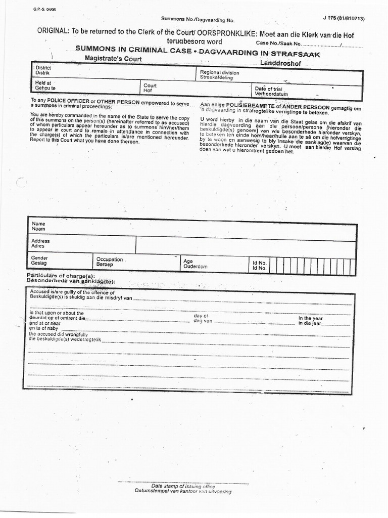 Summons To Court