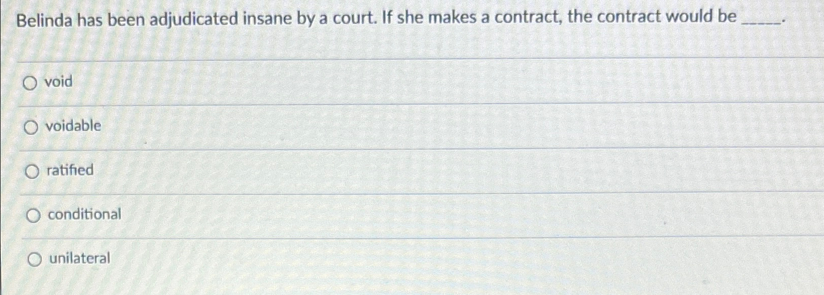 Solved Belinda has been adjudicated insane by a court If Chegg com