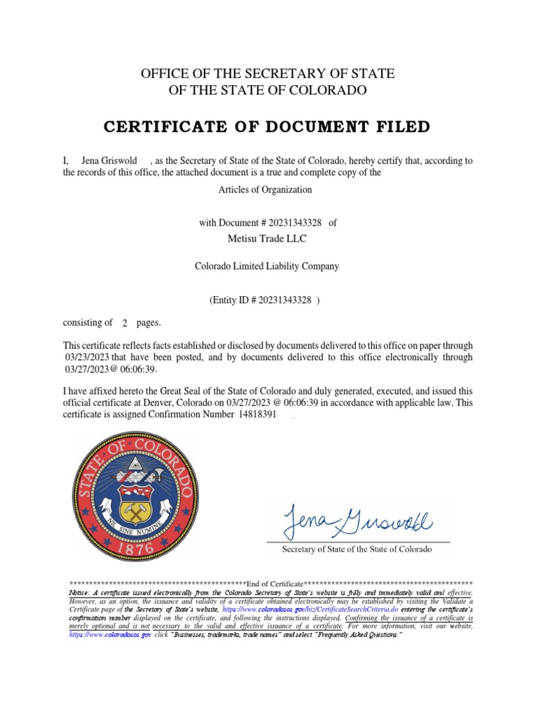 Apostille Certificate of Organization Certificate of Organization Apostille