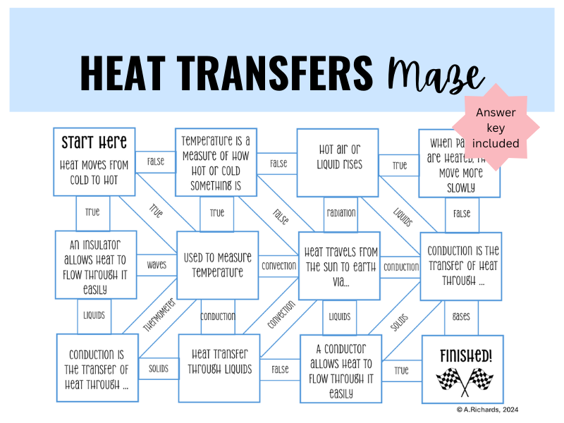 Heat Transfers Maze Worksheet Teaching Resources