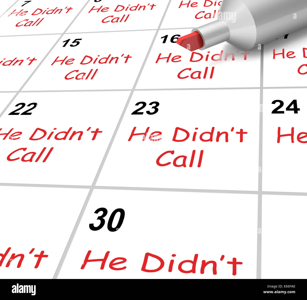 He Didnt Call Calendar Meaning Disappointment From Love Interest Stock