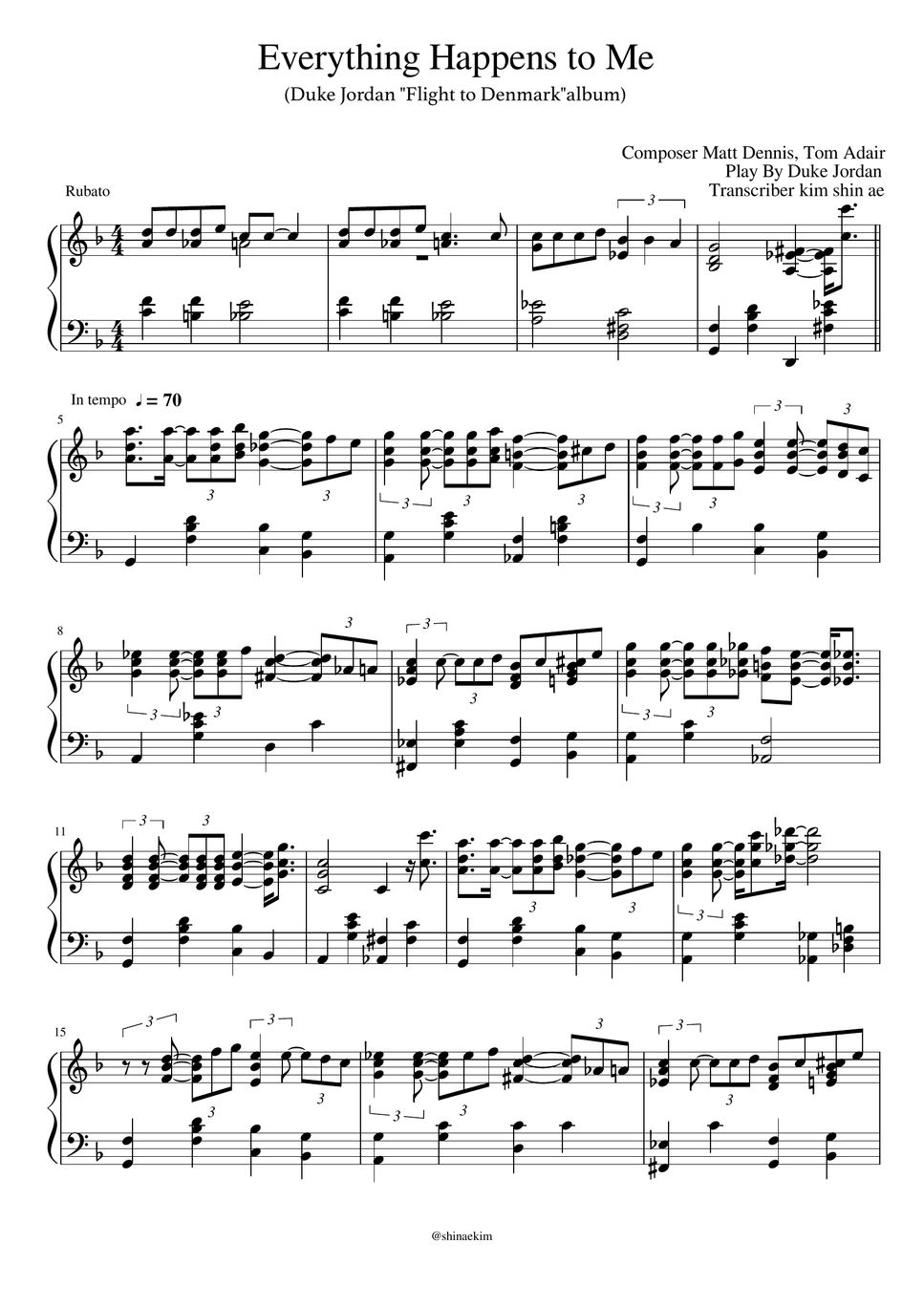 Duke Jordan Everything Happens to Me (Lofi Jazz piano) Лист by Shinae kim