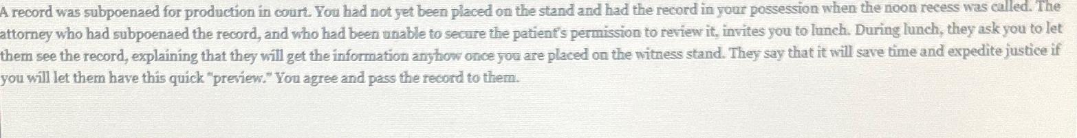 Solved A record was subpoenaed for production in court You Chegg com