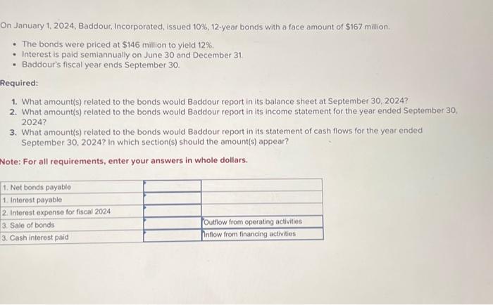 Solved On January 1 2024 Baddour Incorporated issued Chegg com