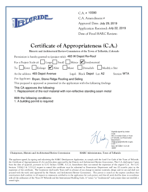 Fillable Online CERTIFICATE OF APPROPRIATENESS FORM and CERTIFICATE