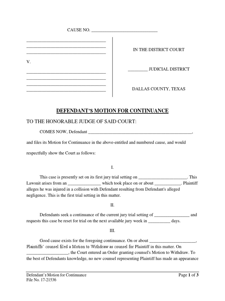 Motion For Continuance Form ≡ Fill Out Printable PDF Forms Online