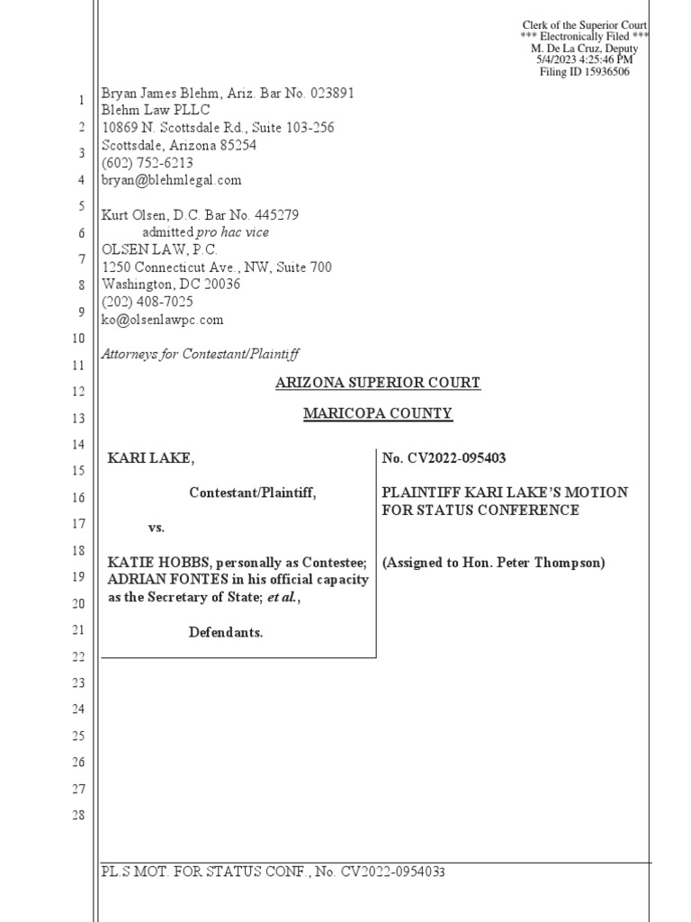 Motion For Status Conference PDF Summary Judgment Lawsuit