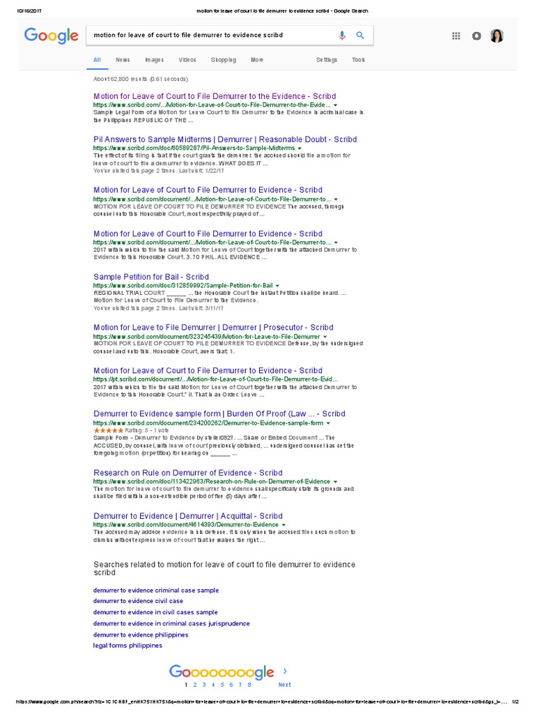 Motion For Leave of Court To File Demurrer To Evidence Scribd Google
