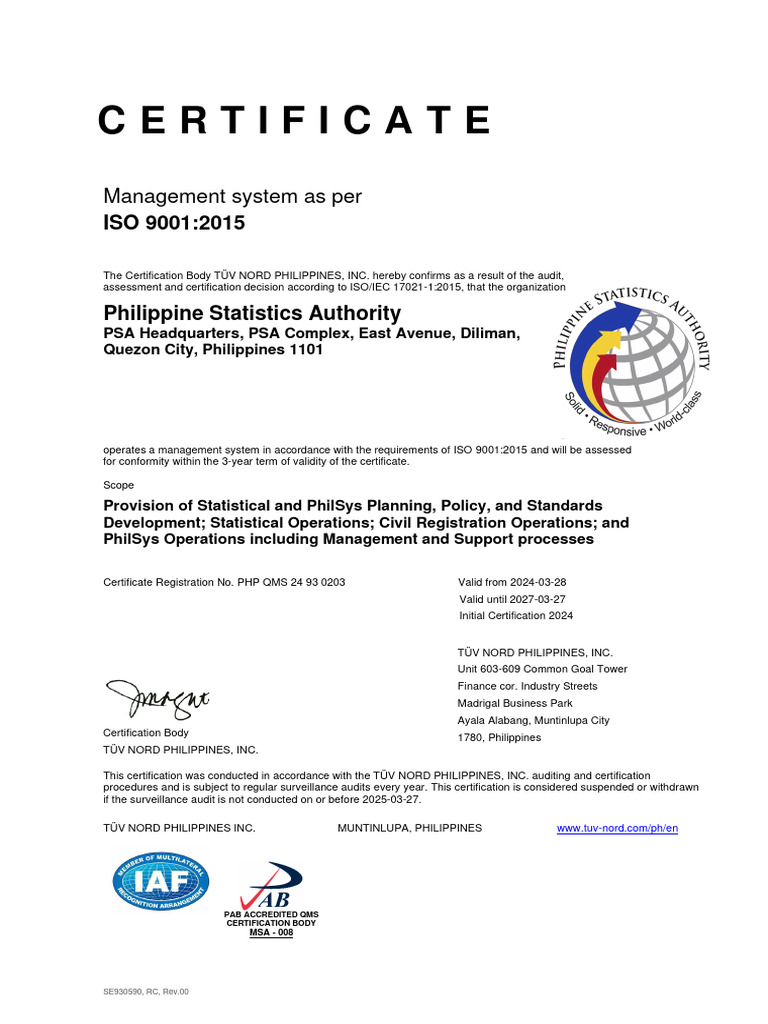 PSO ISO 9001 2015 Certificates PDF Iso 9000 Certification