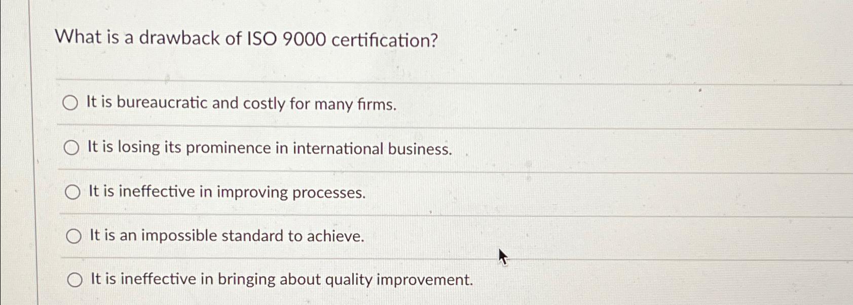 Solved What is a drawback of ISO 9000 certification? Chegg com