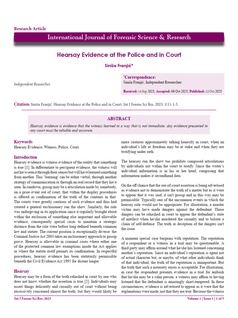 Hearsay Evidence at The Police and in Court PDF Hearsay Witness