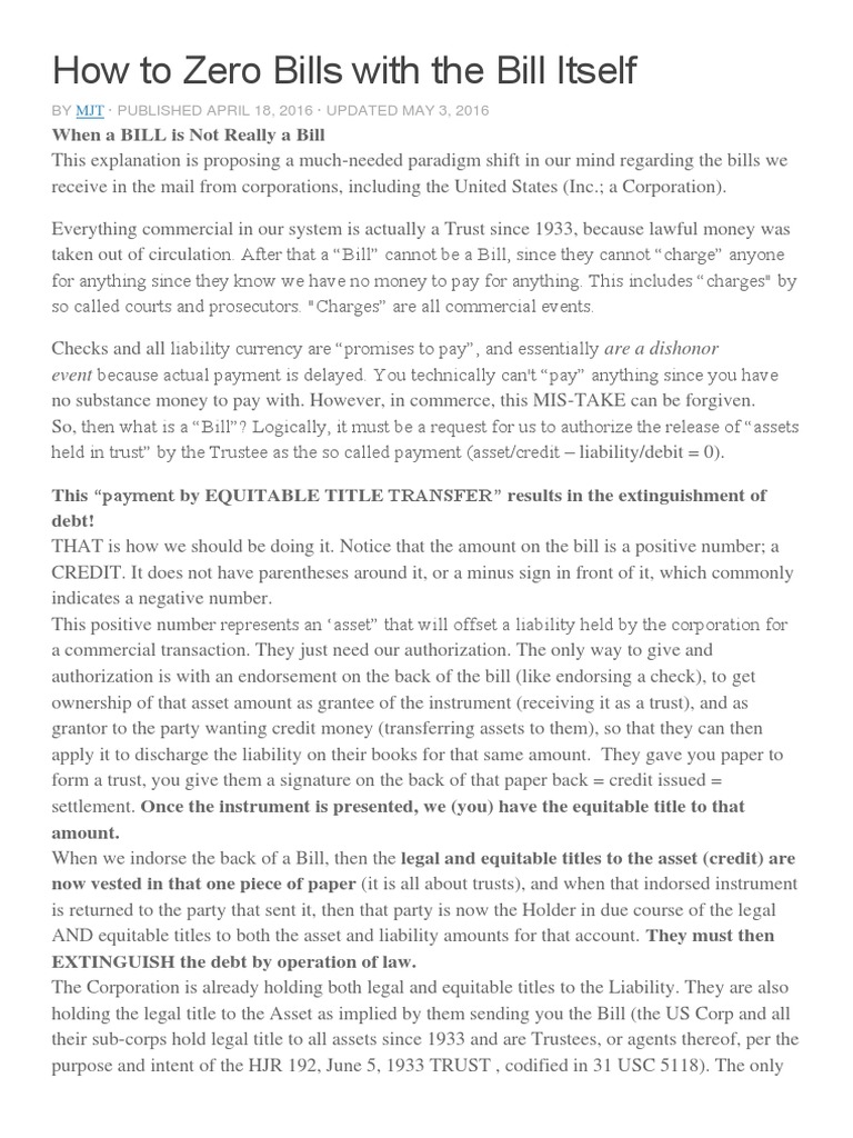 How To Zero Bills With The Bill Itself PDF Trust Law Credit Card