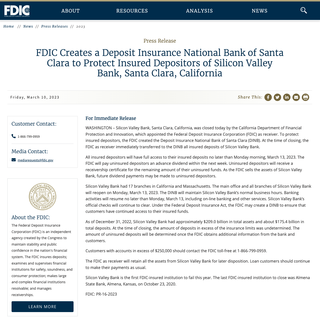 Balaji on Twitter: quot Appears that SVB has been closed The FDIC link