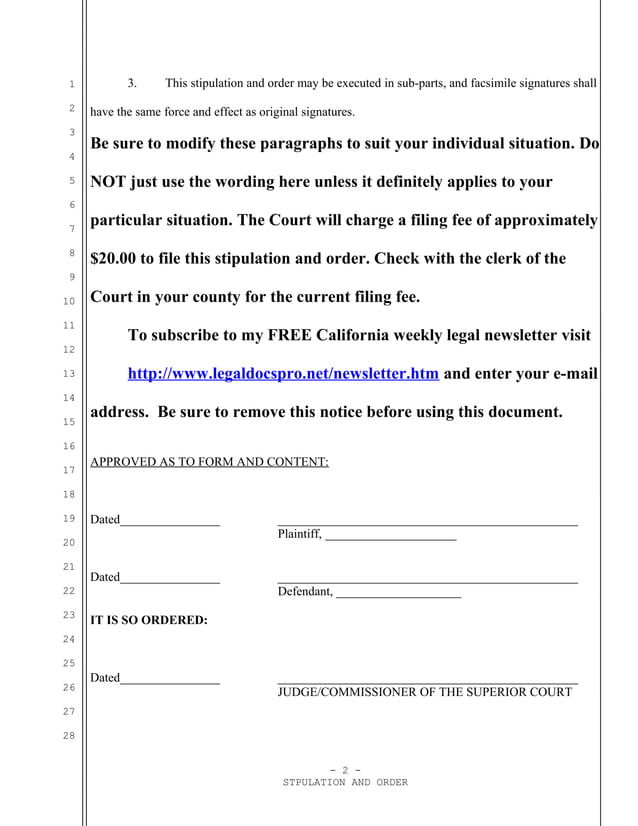 Sample stipulation and order for california DOC