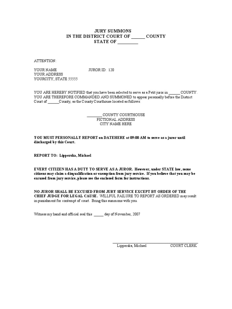 Jury Summons Prop Document PDF