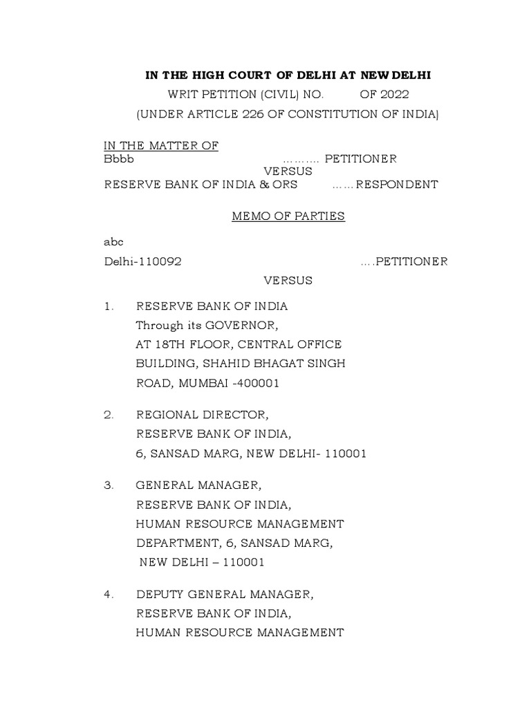 Writ format Writ petition drafting FORMAT OF WRIT PETITION A