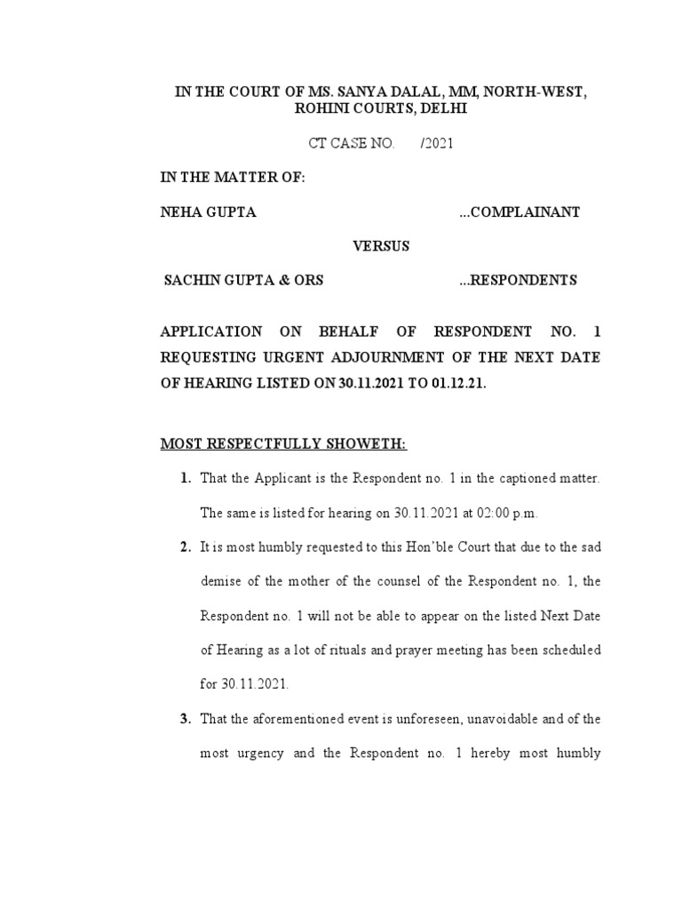 Application For Adjournment of The Case PDF