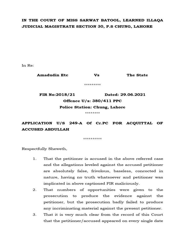 Application For Acquittal of Abdullah in Magistrate Court PDF