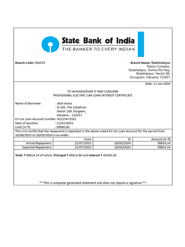 EV Interest Certificate PDF