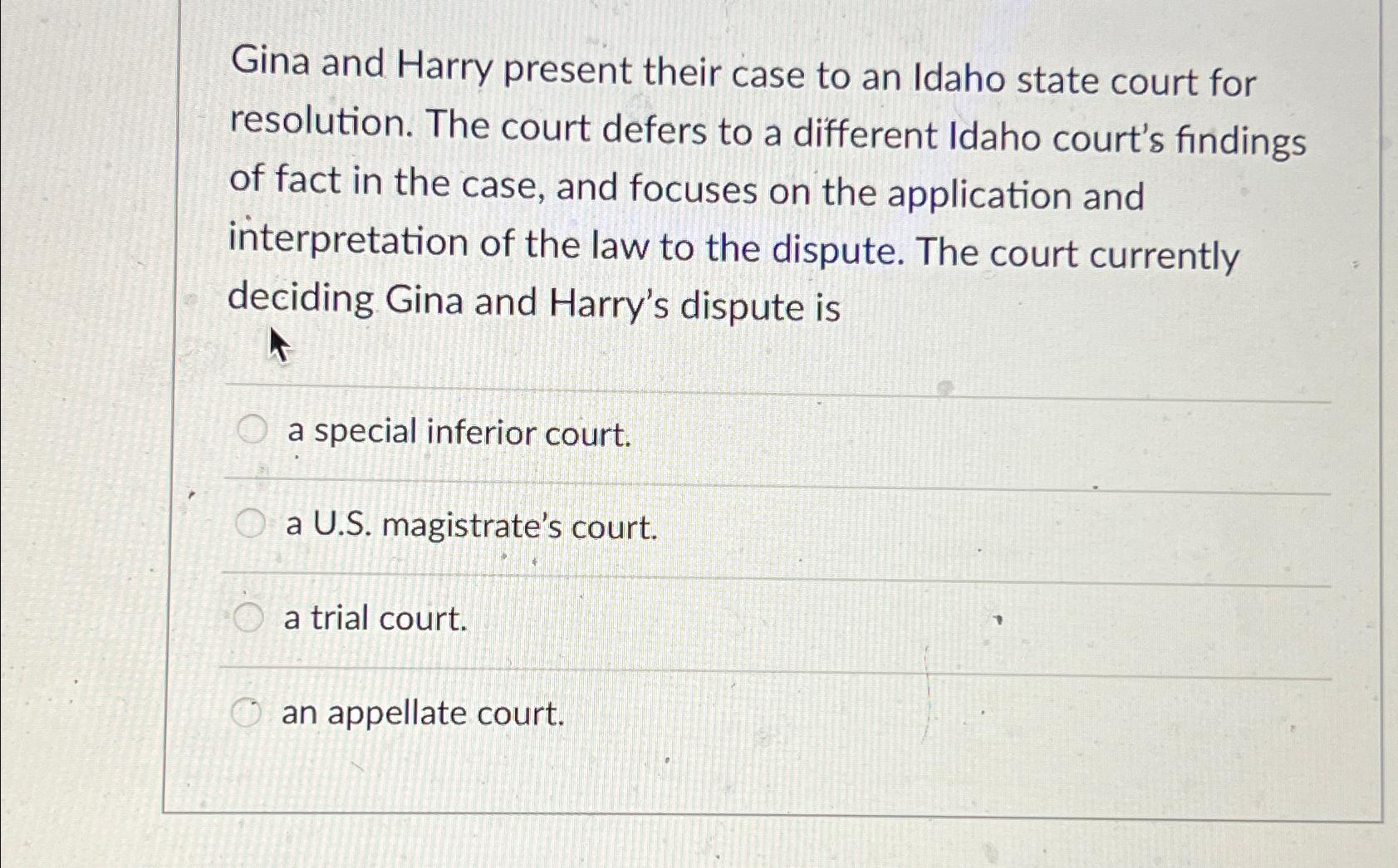 Solved Gina and Harry present their case to an Idaho state Chegg com