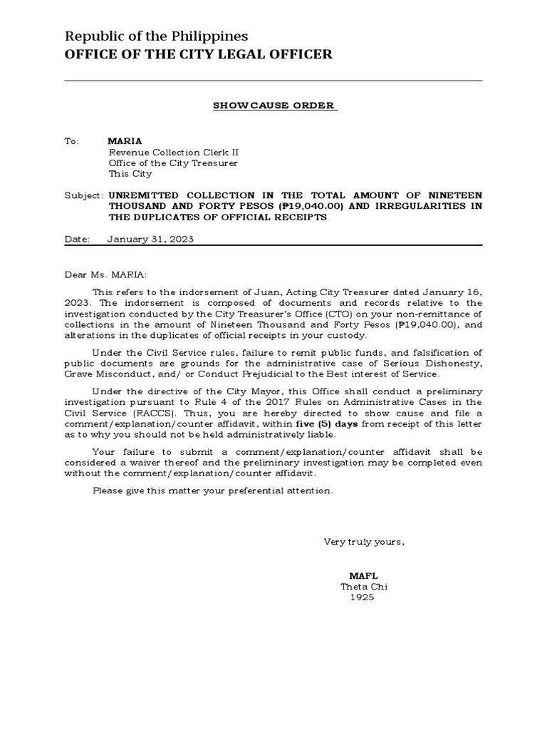 Sample Show Cause Order Grave Misconduct PDF